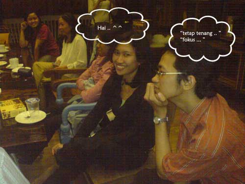 Saya merekam beberapa menit acara tersebut. Sayangnya, tempat pertemuan tersebut tidak bersahabat bagi kamera. Alias remang-remang. Jadi hasilnya juga sangat remang-remang. Jika ada yang ingin mencicipi atmosfer suasana kopdar tersebut dapat berkunjung di sini atau di sini.